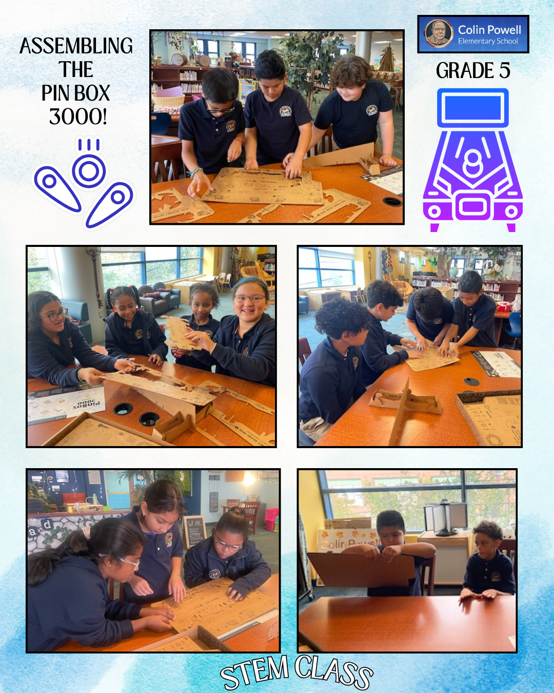 Los alumnos de quinto y sexto grado de Colin Powell concluyeron recientemente un emocionante proyecto STEM construyendo sus propias máquinas de "pinball" PinBox. ¡Estos proyectos se elaboraron íntegramente con cartón!