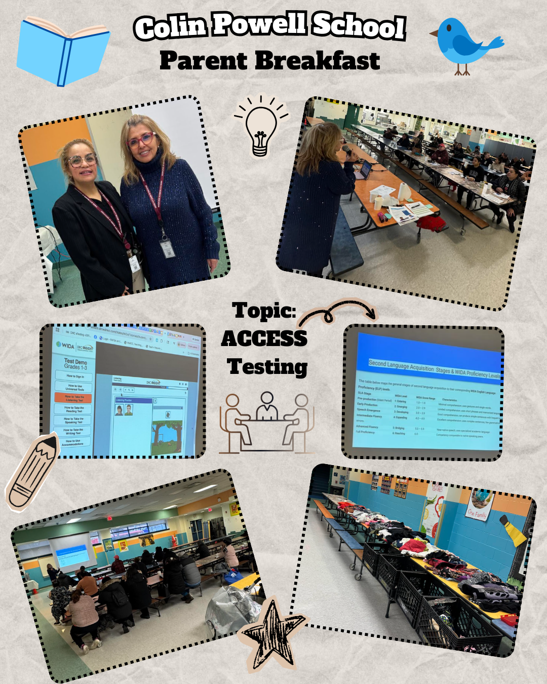 Les informamos sobre un desayuno muy importante para padres en la Escuela de Colin Powell. El tema fue: ¿Por qué mi hijo realiza la prueba ACCESS? Muchísimas gracias a nuestra invitada especial, Ana Valle, supervisora bilingüe y de alfabetización del distrito, por compartir sus conocimientos y ayudar a las familias a mantenerse informadas.